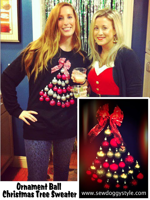 Ugly/Tacky Christmas sweater parties are so fun and can bring out the most creative, festive outfits I’ve ever seen over the holidays. This DIY ugly Christmas sweater is super easy to create and if it’s not “ugly” enough you can for sure add more to it. Erika showed this photo on a post where she did a fun tutorial for a DIY dog sweater so she didn’t write a tutorial but it looks easy enough. From what I can see you just need some mini Christmas ornaments, a bow and a sweatshirt in any color you choose then attach the items by sewing or hot gluing them on in a tree pattern. You could even step it up a notch and not only make it “ugly” but also noisy if you did bells in place of some of the ornaments! Get creative and have fun!